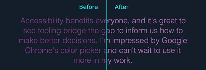 With this small change, our text meets Level AAA requirements to have accessible text color contrast. And all without making any sacrifices to the design.